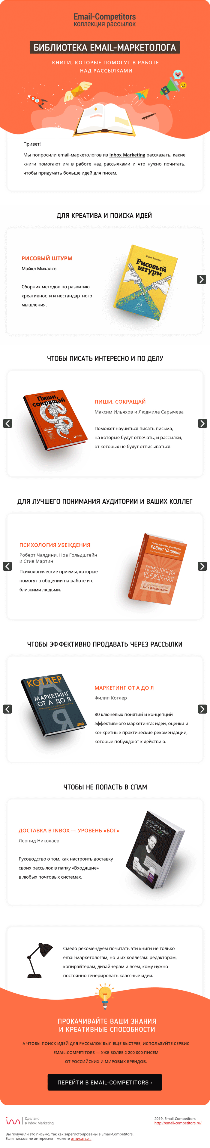 Сделали AMP письмо для подписчиков сервиса Email-Competitors с полезными книгами в «карусели».